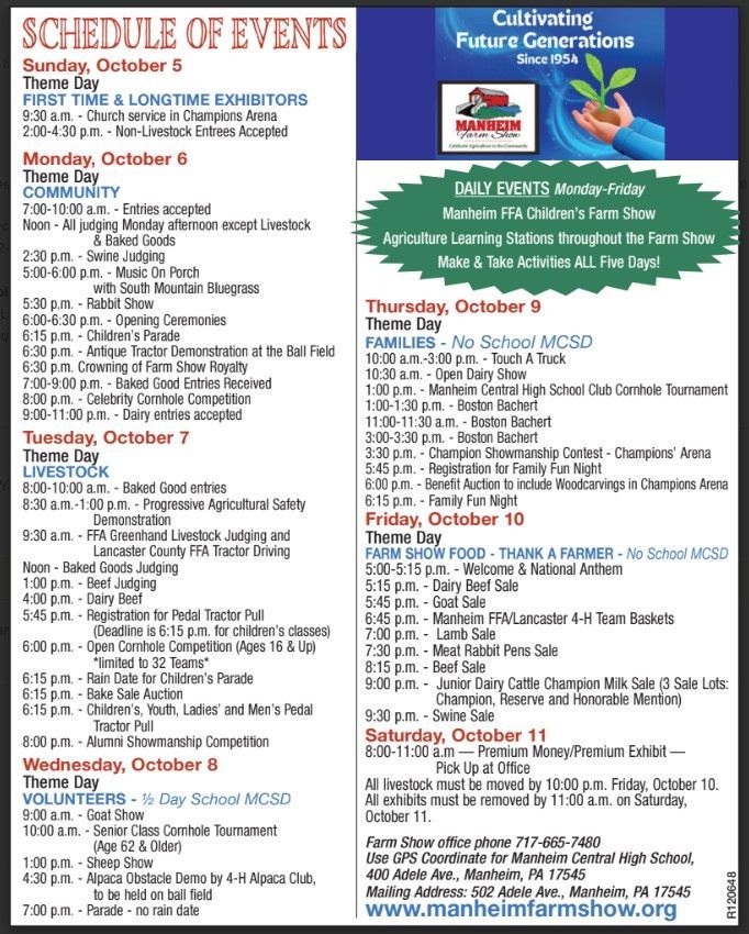 Welcome back to the best week of the year!! I know I say that every year, but I believe that every year. Here are a few things that make it the best week of the year: Fun. Every year everyone has a lot of fun at the farm show. Family Fun Night always provides a good time for a lot of people. The parade is fun for hundreds of participants and thousands of spectators, the streets are lined with people having a good time. And it’s fun to forget about nutrition for a week and fill up on fries, shakes, and other farm show foods. Agriculture. 4-H and FFA students have spent up to a year getting their animals ready for show week, and it shows! They do an amazing job getting them to the ideal weight and grooming them to look their best in the show ring. If you’re visiting the farm show and don’t know anything about showing animals, ask some of the kids about them. You’ll be amazed by their knowledge and what it takes to get an animal ready for the show. And be sure to check out all the displays of canned goods and flowers that people have grown in their gardens. We are surrounded by VERY talented people! Reunite. One of my favorite parts of farm show week is reconnecting with people I haven’t seen in a while. I love seeing groups of people standing and talking or sitting in the food tent for a LONG time after they’re done eating. The change of pace of farm show week allows us to forget the normal routine, and take time to renew friendships, and get to know new people. Uniting, or reuniting people, is a huge part of farm show week, and it is so needed in today’s world. Memories. If you have been going to the farm show for many years, I’m sure you have great memories from the past. If it’s your first time here, we hope you have a great time and create great memories that you’ll look back on for years to come. Be sure to take pictures while you’re here. It’s great to look back at pictures of kids at the Children’s Farm Show and see how they’ve grown. And it’s great to simply fill your mind with memories of the community working together to make a great week for all who attend. Thanks for coming the farm show, thanks to the amazing group of volunteers who do whatever it takes, and thanks to the community for their incredible support year after year!